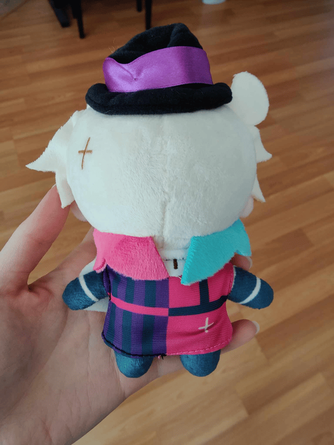 6''/15 cm, relatively small for a plush! Comes with a free Bettel-themed sticker sheet.